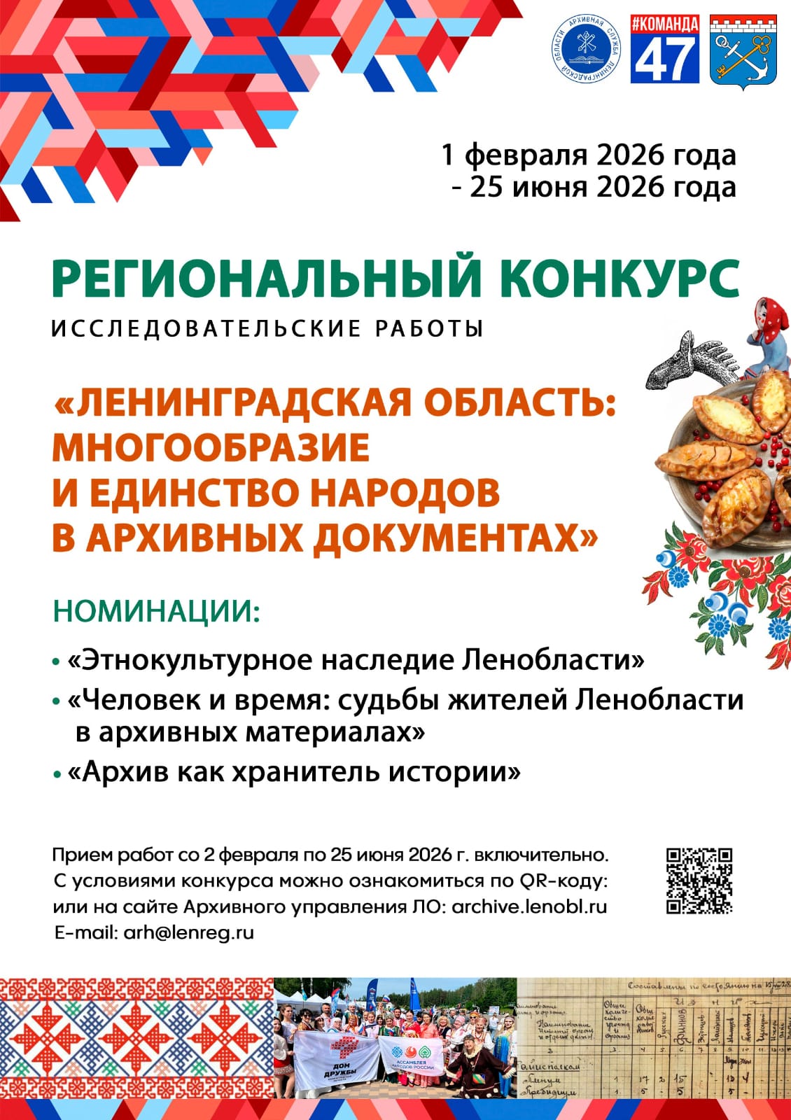 «Этнокультурное наследие Ленинградской области» -исследовательские работы о традициях, быте, языке, обрядах и культурных особенностях народов, проживающих в Ленинградской области, на основе архивных источников.